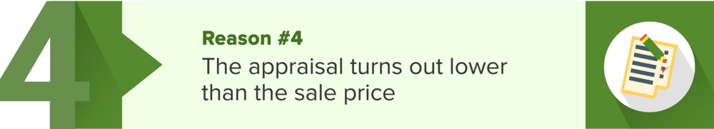 Buyers who apply for a mortgage will be asked by their lender to pay for an appraisal of the property. Unfortunately, sometimes the home appraisal comes in at less than the asking price. This can be a huge deal breaker to buyers because banks will only lend them the appraised value of the home, and not all buyers can afford to pay the difference. This situation is common in a seller's market where there’s limited housing inventory and the rampant bidding wars cause prices to go beyond the normal home value.